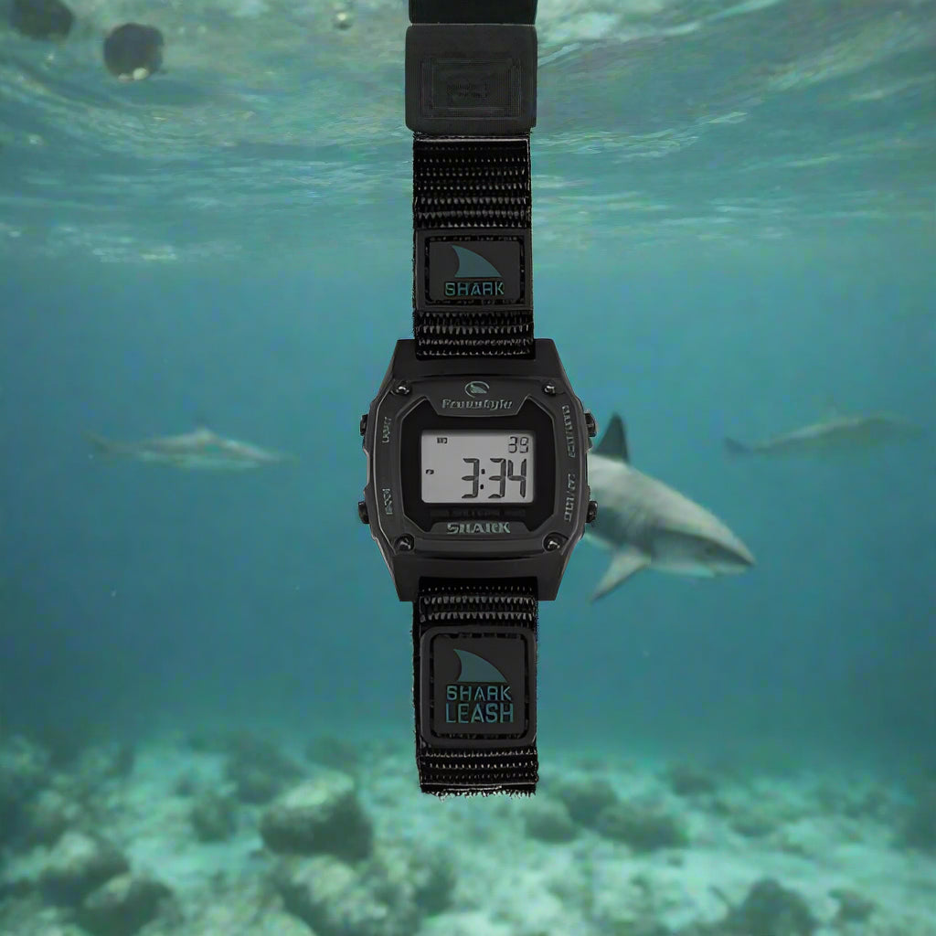 The Shark Leash Mini is a compact take on the classic Shark Leash, featuring a 30mm case width ideal for smaller wrists. Built for active use, it includes functions such as an alarm, dual time, countdown timer, stopwatch, and night vision backlight. Consistent with all Freestyle Watches, the Shark Leash Mini offers water resistance up to 100 meters and is protected by our limited lifetime warranty.