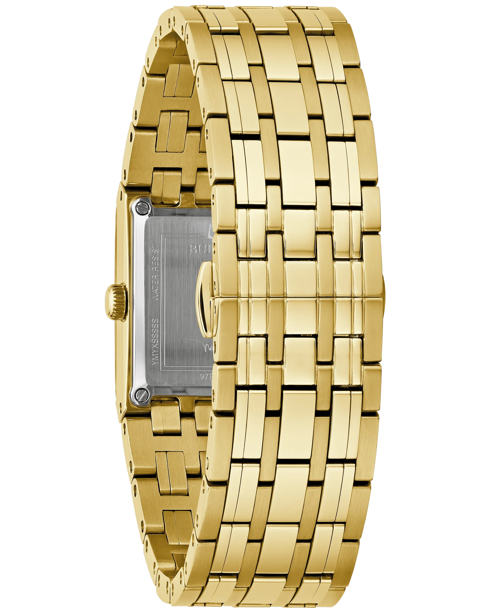 Designed in partnership with Marc Anthony, the Bulova Quadra for women merges artistic vision with horological craftsmanship. The gold-tone stainless steel case frames a striking black dial adorned with matching gold-tone indices and hands. Three strategically placed diamonds at 1, 3, and 5 o'clock—personally selected by Anthony—add refined sparkle, while his signature graces the caseback. The sophisticated multilink bracelet integrates seamlessly with the case, secured by a push-button deployant clasp that ensures both security and comfort. A timepiece that balances understated elegance with distinctive character, ideal for those who appreciate watches with a narrative.