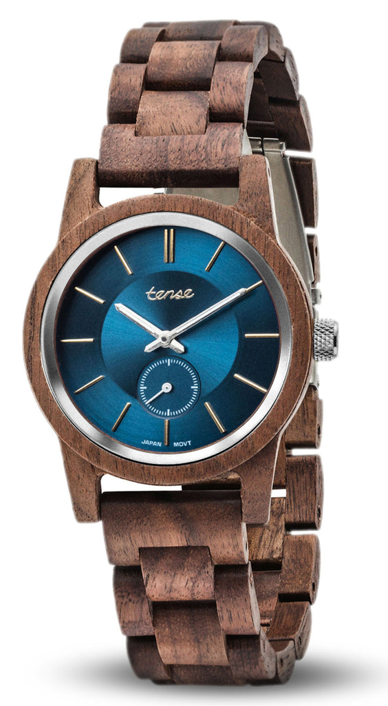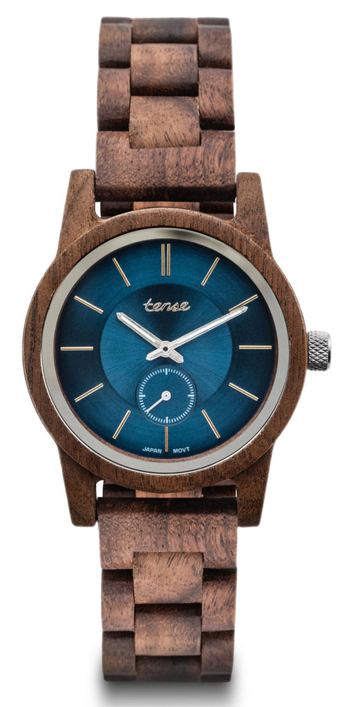 This unisex watch shows hour, minute, and second markers on a round dial. The Hampton II is made from 100% recycled or reclaimed wood, with Miyota watch movement from Japan and is adjustable in size.