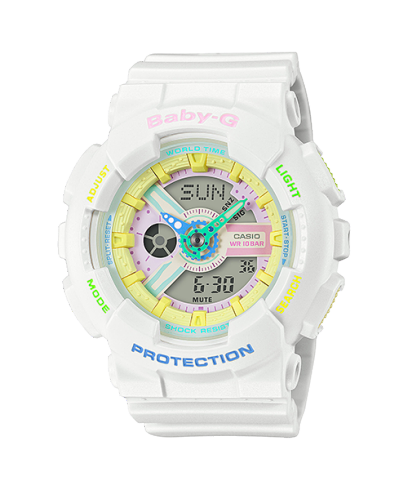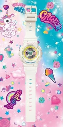 Inspired by Decora, the vibrant Japanese street fashion movement, this BABY-G BA110TM-7A reimagines the iconic BA-110 silhouette for the modern active woman. The design blends the watch's signature mannish aesthetic with playful color blocking—pairing sophisticated black and crisp white with whimsical pastels across the case and buttons. A direct homage to Harajuku's late-1990s kawaii culture, this model merges bold functionality with contemporary style. Measuring 46.3 × 43.4 × 15.8 mm, it delivers the durability BABY-G is known for without compromising on personality. This is a limited model. Only one left in stock. #decora