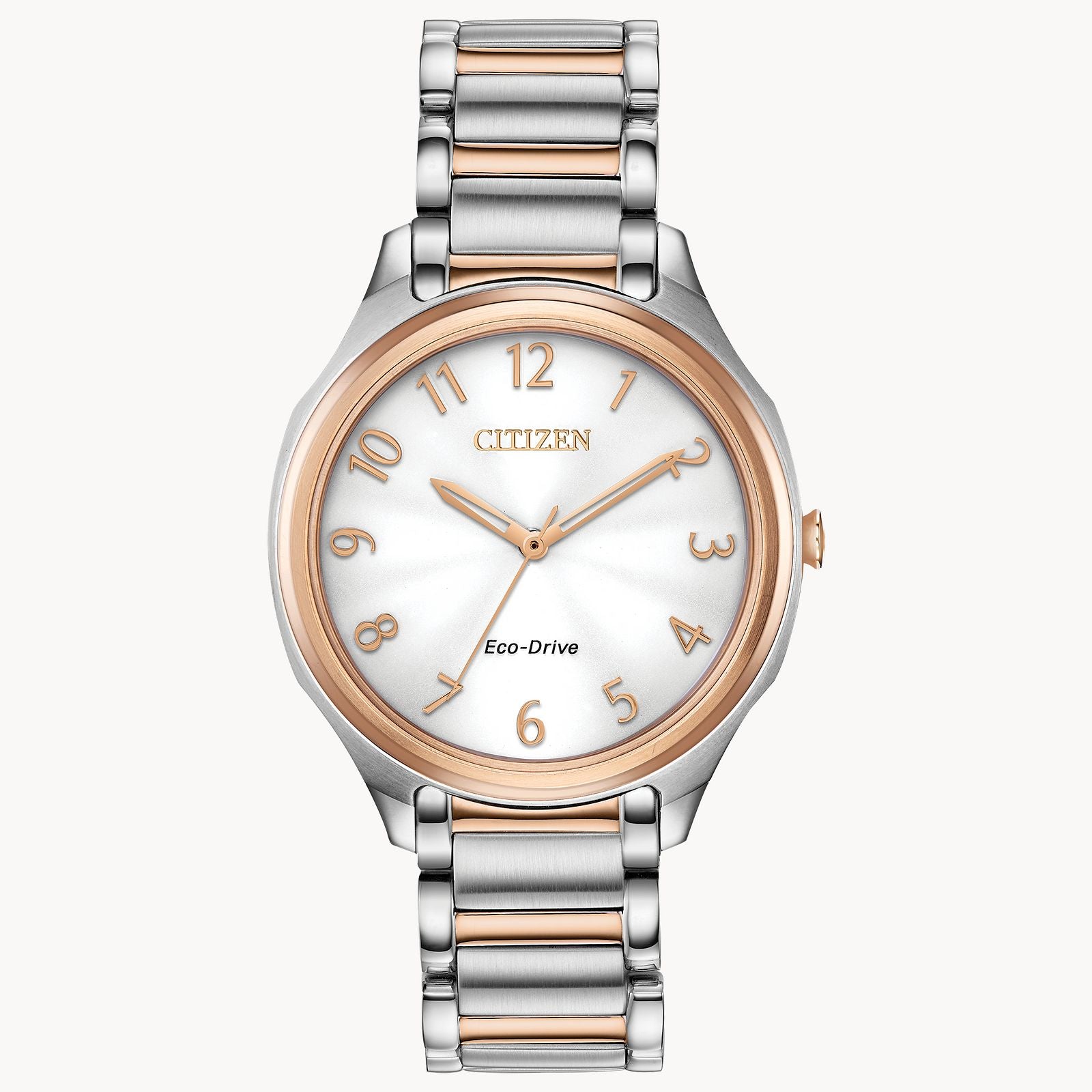 Make room in your watch collection for the new Drive from Citizen LTR timepieces. A fresh staple to your every day watch wearing with clean lines and simplistic detailing. Featured in two-tone pink gold-tone stainless steel with silver dial. Featuring our Eco-Drive technology – powered by light, any light. Never needs a battery. Caliber number E031.