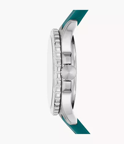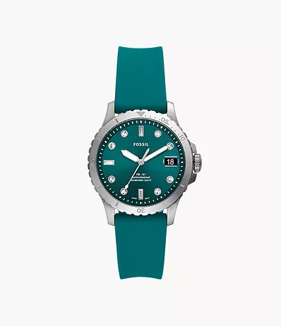 Take the plunge into color with our classic, dive-inspired FB-01 watch. It features a teal-green silicone strap, a silver top ring, crystal indices and a light-reflecting teal-green sunray watch face. Ready for the season? Yes. A total statement maker? Well, obviously.