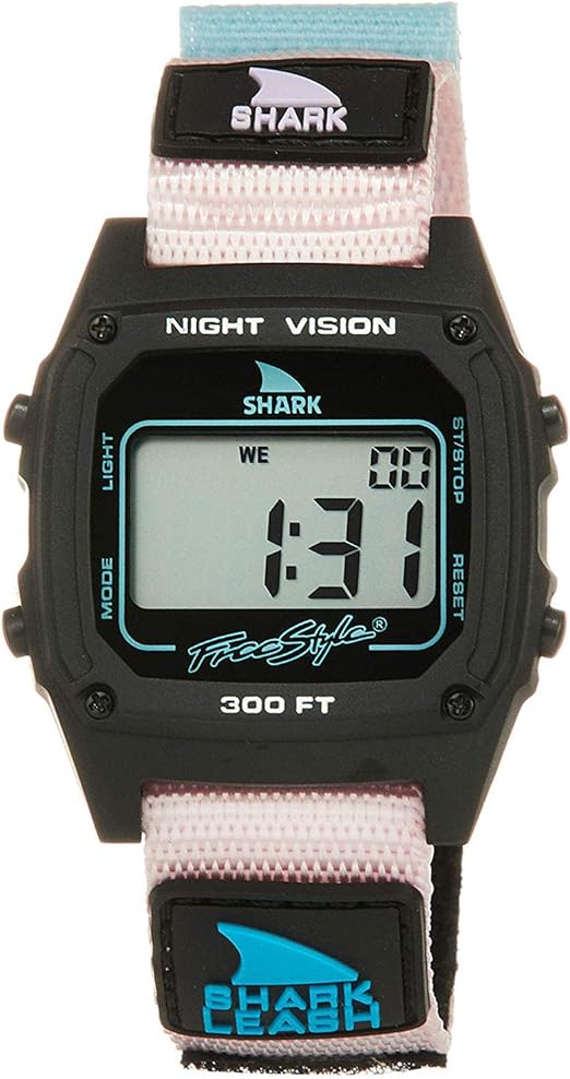 Style: FS101041 They’re Back. The original Velcro band that ignited Freestyle Watches in the late 80’s is back and better than ever. The shark leash’s velcro closure system is modeled after an 80’s style surfboard leash, and is ready to get radical. The Shark Leash comes loaded with standard digital features like time, date, stopwatch, countdown timer, alarm and night vision backlight. Like all Freestyle Watches, The Shark Leash is water resistant to 100 Meters and backed by our limited lifetime warranty. Shark to the Future!