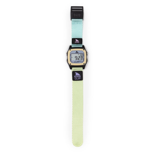 GreenTea, with a 38mm case, exemplifies retro-futurism at its best. The Shark Clip introduces the innovative clip band system that launched the Freestyle brand, functioning like a seatbelt to secure your watch firmly and comfortably. As with all Shark Watches, the Shark Clip comes with our limited lifetime warranty for enduring reliability.