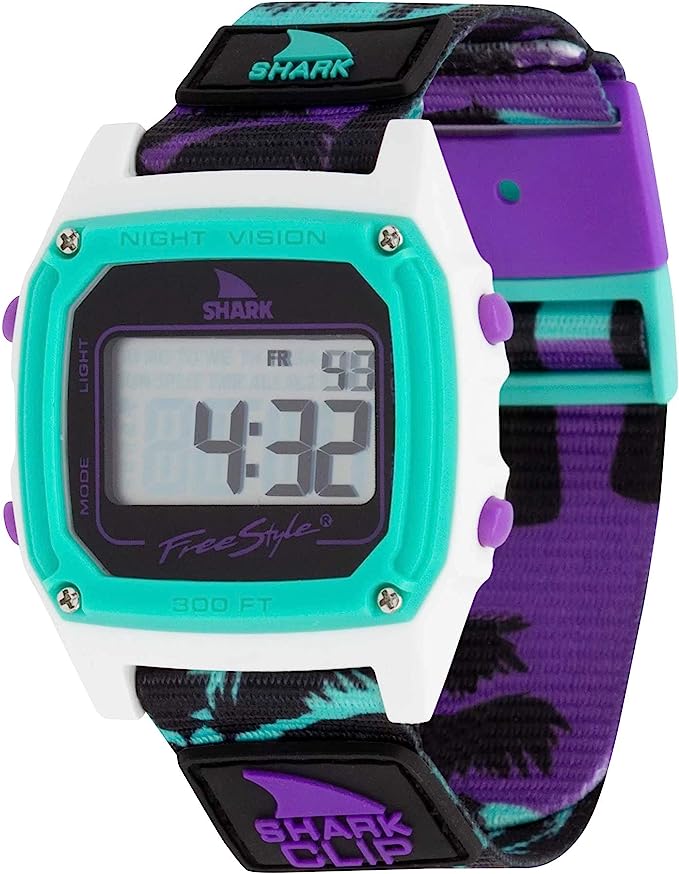 Style: FS101076 Purple Sunset, the first collaboration between Freestyle x Amber Torrealba is Inspired by her coastal roots. The signature pattern of the Shark Clip straps takes you to the place where the waves are high, and the palm trees grow. This fusion of function meets fashion reminds you that timing is everything and spending it with purpose can lead you to the best experiences in life.