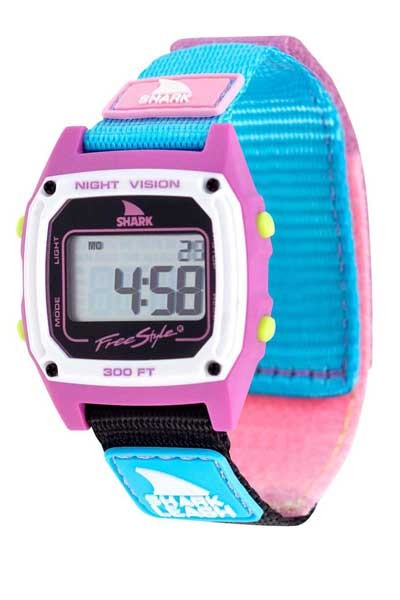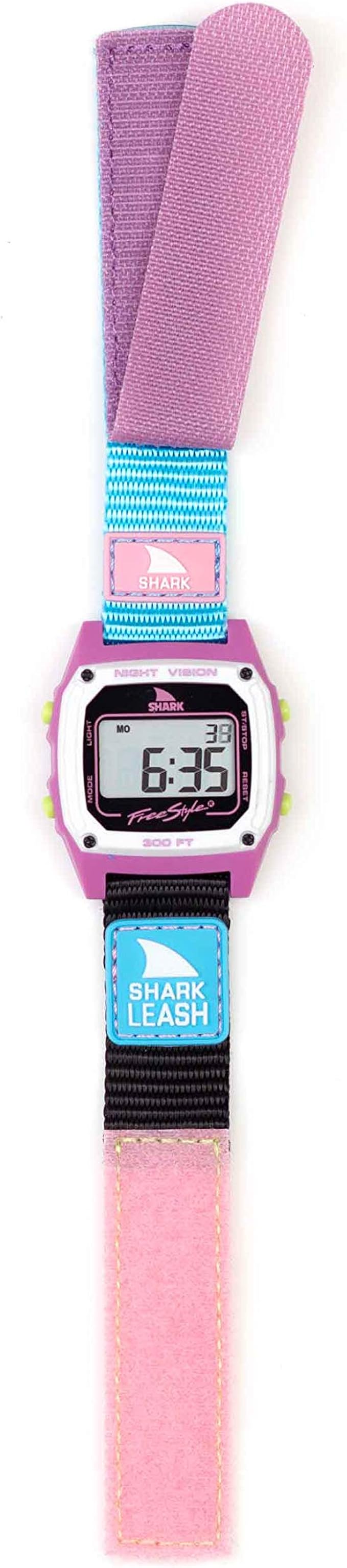 Style: FS101086 They’re Back. The original Velcro band that ignited Freestyle Watches in the late 80’s is back and better than ever. The shark leash’s velcro closure system is modeled after an 80’s style surfboard leash, and is ready to get radical. The Shark Leash comes loaded with standard digital features like time, date, stopwatch, countdown timer, alarm and night vision backlight. Like all Freestyle Watches, The Shark Leash is water resistant to 100 Meters and backed by our limited lifetime warranty. Shark to the Future!
