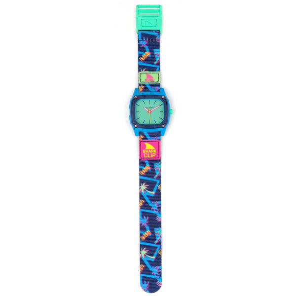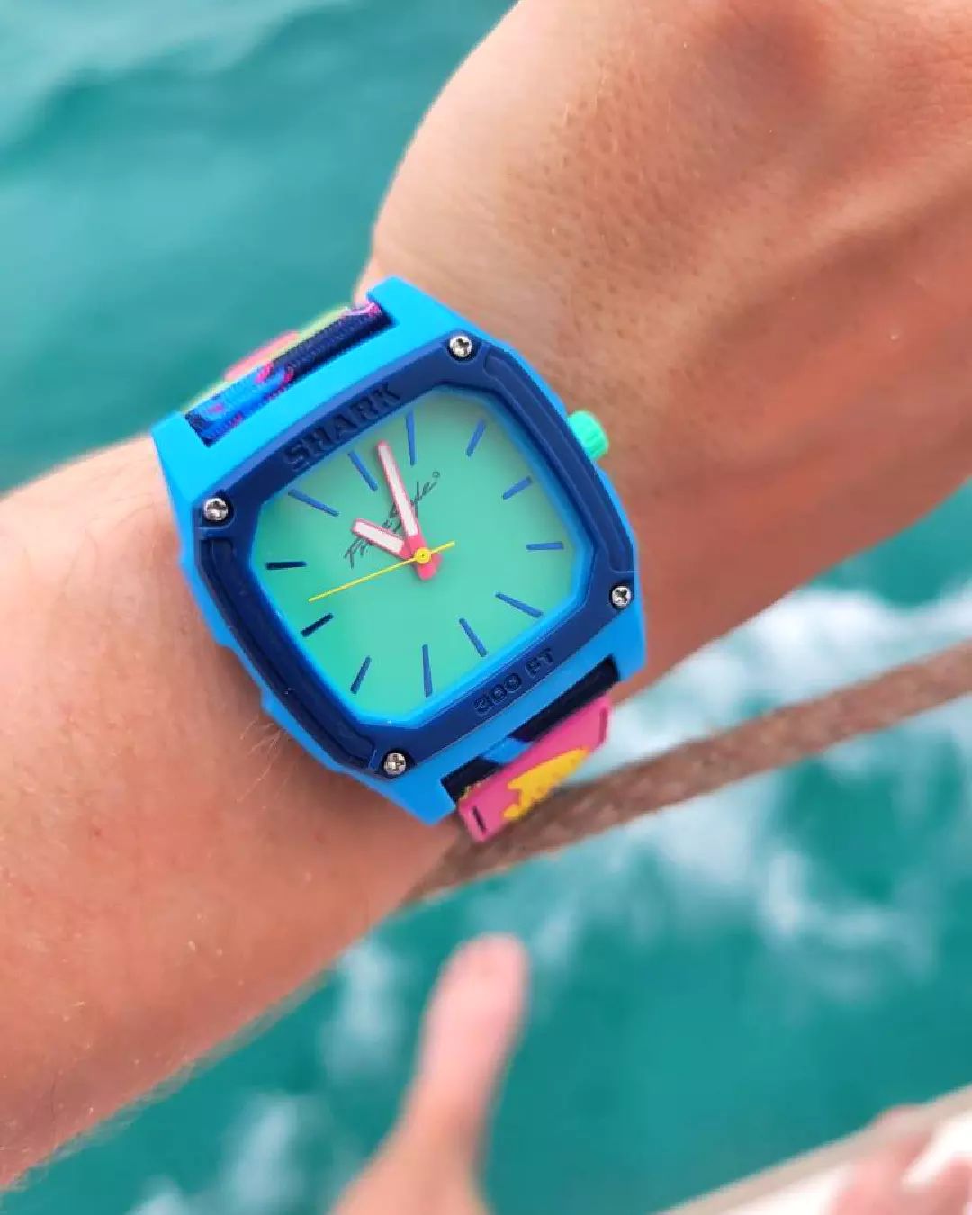 Time to Rock -D- Clock this season with the new Freestyle Shark analog clock dial collection. Just like the classic Freestyle Shark this new series demonstrates that timing and performance go hand in hand. Water–resistant to 300 ft and features the classic Shark Clip strap that is built to go with you on all your adventures in and out of the water.