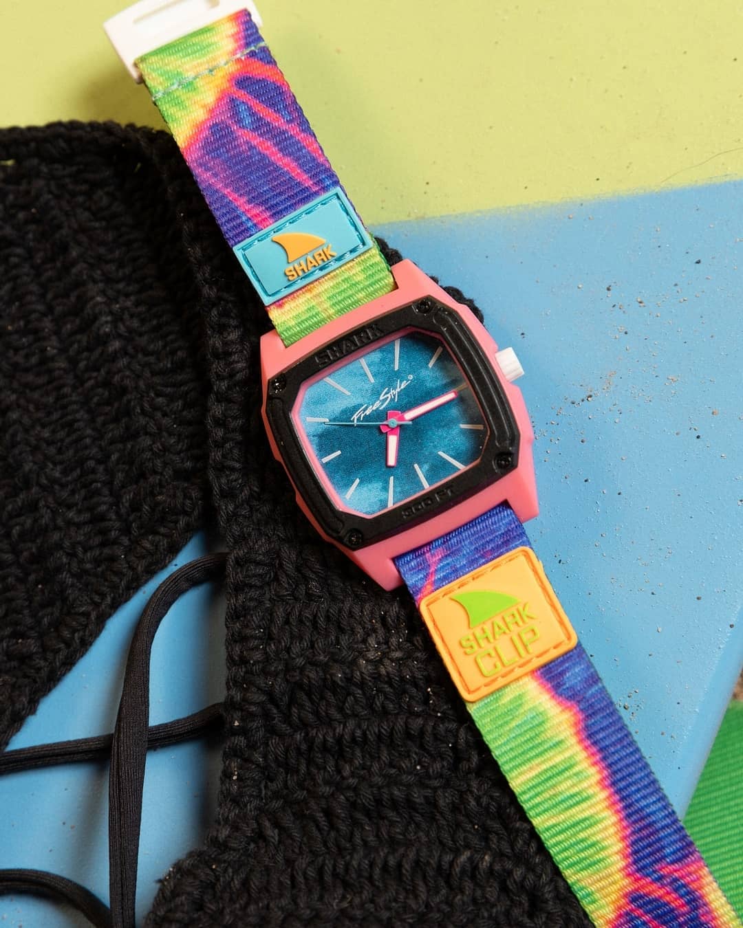 Style: FS101125 Time to Rock -D- Clock this season with the new Freestyle Shark analog clock dial collection. Just like the classic Freestyle Shark this new series demonstrates that timing and performance go hand in hand. Water–resistant to 300 ft and features the classic Shark Clip strap that is built to go with you on all your adventures in and out of the water.