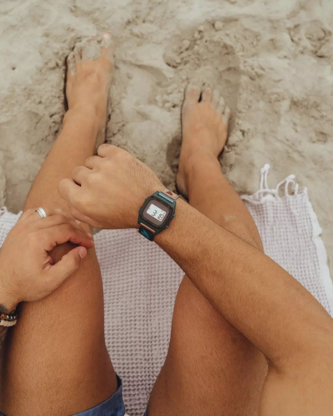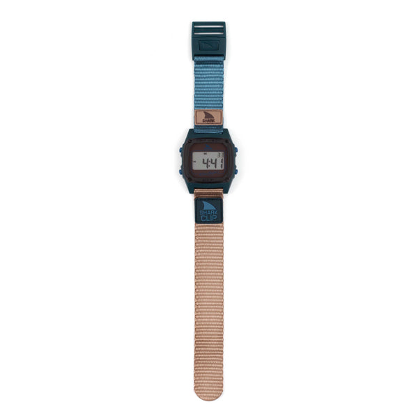 The SeaNSand FS101136 exemplifies retro-futuristic design with its 38mm case and signature clip band system that established the Freestyle brand. This innovative clasp functions like a seatbelt, securing the watch comfortably and reliably on your wrist. As with all Shark Watches, the Shark Clip includes a limited lifetime warranty for enduring quality and support.