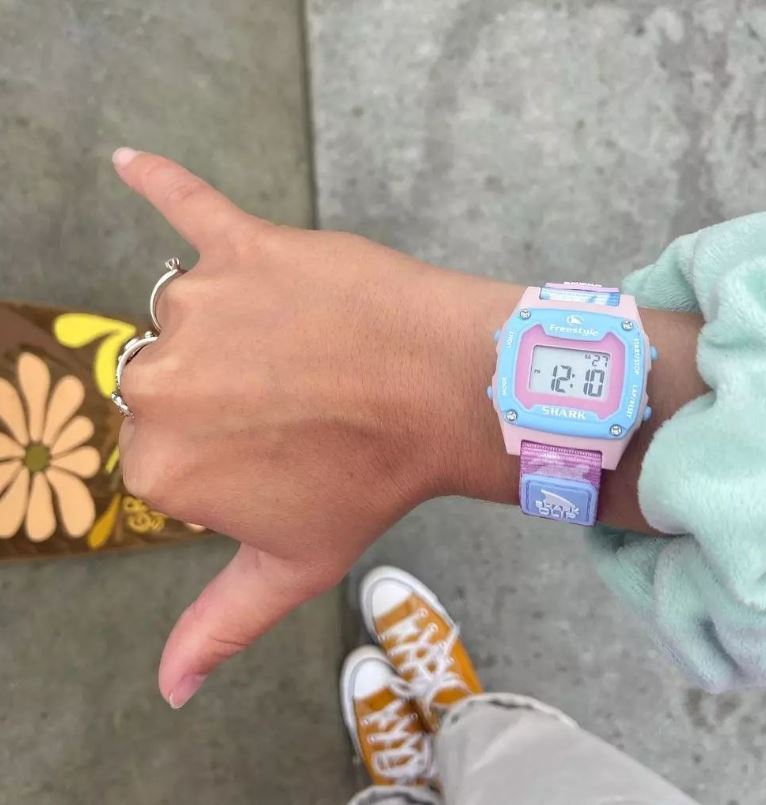 Retro-futurism for smaller wrists! The #TrippyTurtle Shark Mini Clip features the original clip band system that ignited the Freestyle brand. Much like a seatbelt, just clip in to keep your watch safe, snug and comfortable. Like all Shark Watches, the Shark Mini Clip is backed by our limited lifetime warranty. NEW LONGER STRAP FITS UP TO 8" WRIST.
