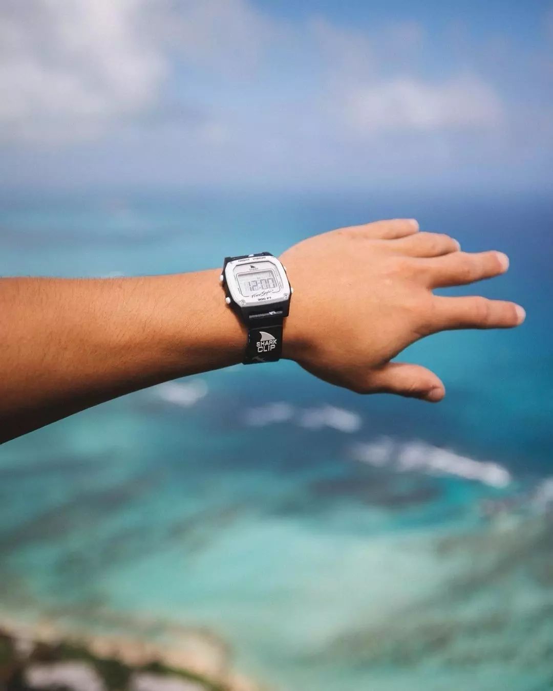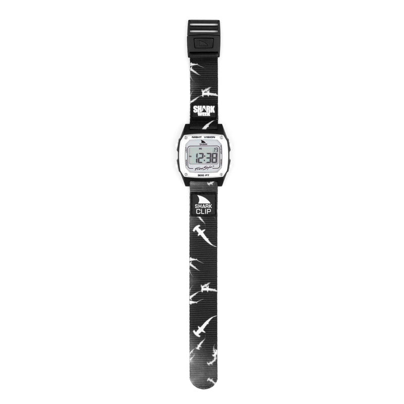Style: FS101174 Full disclosure, we love SHARKS! So, it was only natural that we team with the Discovery Channel on another SHARK WEEK Collaboration. This limited edition watch collaboration celebrates 34 years of Shark Week. Sleek and mysterious The Mega Hammerhead Shark Classic Clip brings the majesty of a school of hammerhead sharks to your wrist with a silhouetted hammerhead pattern. Like all Freestyle SHARK watches it is backed by a Limited Lifetime Warranty.