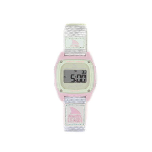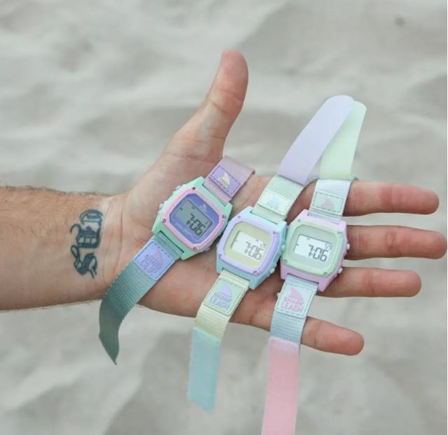 Catch beachside vibes with Shark Leash #OuterBanks from the Sol Surf Collection by Freestyle Watches. Rocking the iconic Shark Leash strap that defined 80s surf culture, #OuterBanks digital watch blends retro charm with modern functionality. With a hook and loop closure inspired by vintage surfboard tethers and essential digital features, it tracks your endless summer days. Muted pastels of lilac, green, and pink evoke those chill beach evenings, while the alarm ensures you're up for sunrise surf sessions. Water-resistant up to 100 meters, #OuterBanks is your go-to for every beach adventure, backed by our lifetime warranty. #OBX