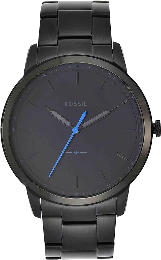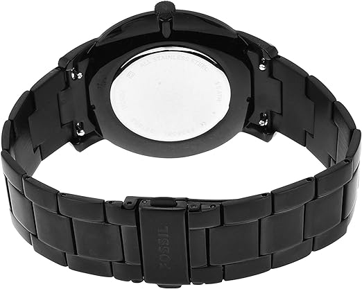 Black stainless steel case with black sunray dial; black stainless steel bracelet band; links can be removed for a customized fit; interchangeable with all 22mm Fossil watch straps
