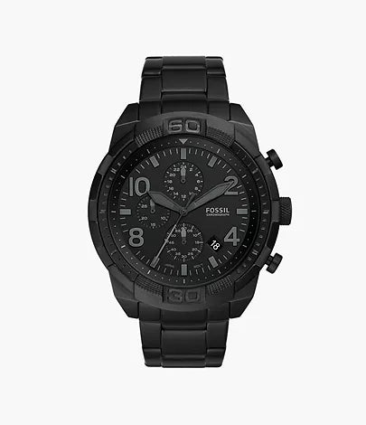 This 50mm Bronson features a black satin dial, chronograph movement and a black stainless steel bracelet.