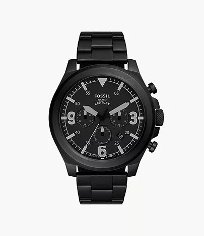 This 50mm Latitude features a black satin dial, chronograph movement and a black stainless steel bracelet.
