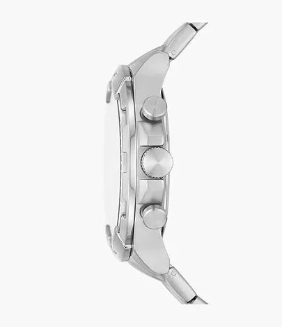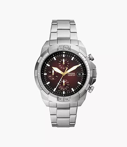 This 44mm Bronson features a red sunray dial, chronograph movement and silver-tone stainless steel bracelet.