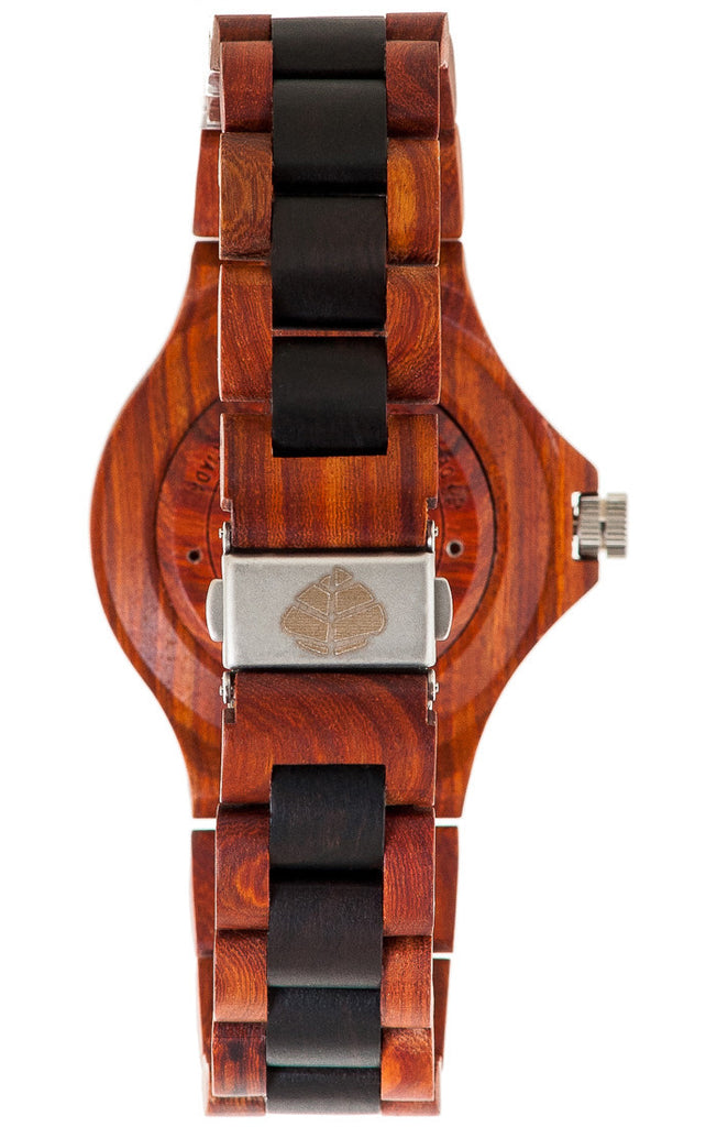 This unisex watch shows hour, minute, second markers and the calendar date on a round face. The Metro is made from 100% recycled and reclaimed wood, with Miyota watch movement from Japan and is adjustable in size with stainless steel crown and clasp.