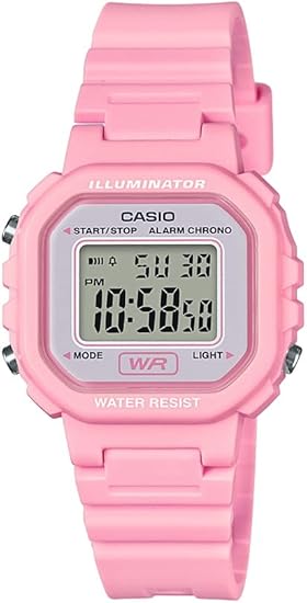 New petit ladies digital watch with a molded resin band for a comfortable fit. Stopwatch, alarm and 5 year battery provide function and longevity.