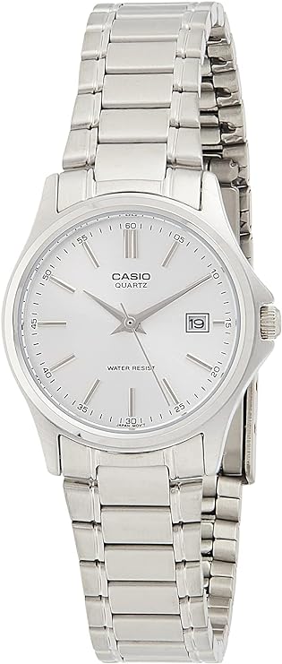 Metal Fashion - Three-hand Japanese Quartz movement displaying polished silver-tone hour, minute and sweep seconds hands, Applied and polished silver-tone baton markers read hours while white numbers and indices reveal outer minute track, Analog date display positioned at 3, Brushed and polished silver-tone metal round bezel and case.