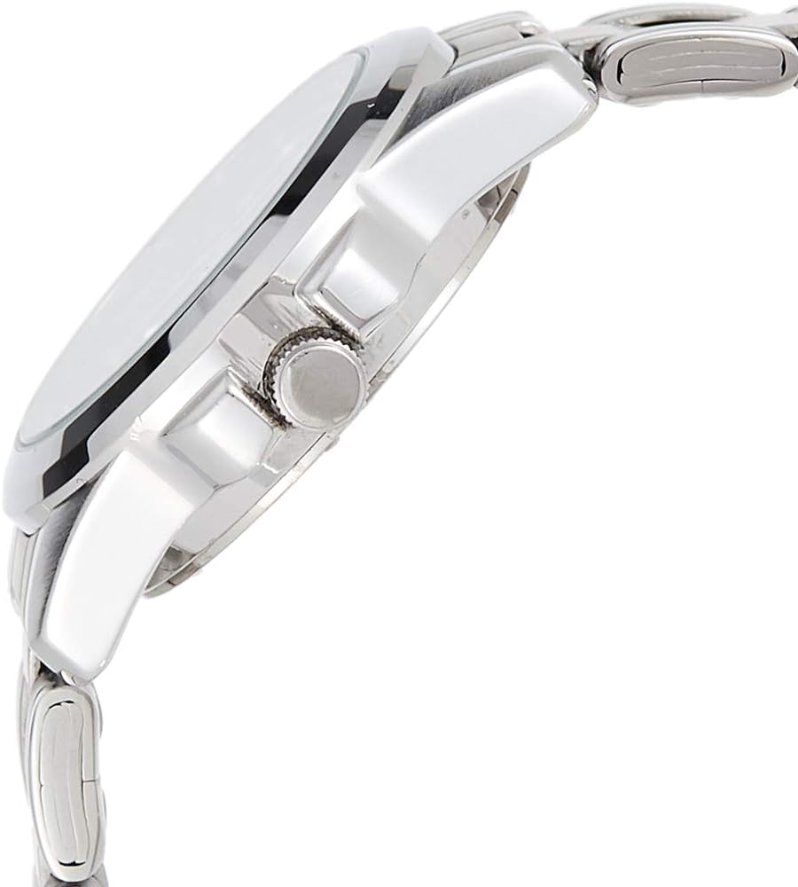 Fashionable ladies 3-hand analog with a hint of color. Square stainless steel case & band with one-touch push clasp closure and spherical mineral glass. Featuring a Silver Metal Band and Blue Face.