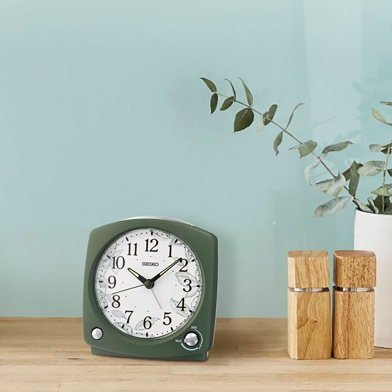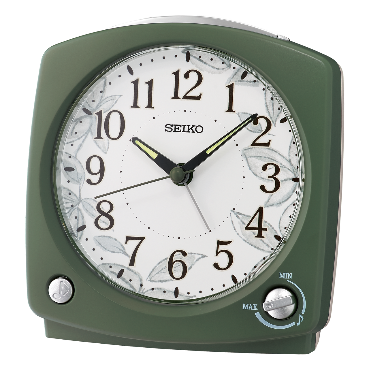 Experience the tranquil essence of island living with the Seiko Island Collection, where every glance at "Serene" takes you to a place of sweet-smelling flowers, cool breezes, and lush greenery. "Serene" is more than just an alarm clock - it's a window to paradise. Its square analog design features a dial adorned with a serene island motif, bringing the calming beauty of the tropics into your everyday routine. The quiet sweep second hand ensures a peaceful atmosphere with no ticking sounds, allowing you to fully immerse yourself in relaxation. Designed for absolute quietude, "Serene" offers a selectable alarm with options. Choose from soothing bird song or melodies to a traditional beep sound. Melodies include Dance of the Hours, Morning from Peer Gynt and Waltz of the Flowers. Complete with snooze functionality, adjustable volume control, and a handy light feature, waking up has never been more peaceful or pleasant. Luminous hour and minute hands ensure readability even in low light, while its compact dimensions make it versatile for any space, whether bedside or on a desk. Powered by three AA batteries (included), "Serene" is reliable and convenient, ensuring uninterrupted island-inspired tranquility wherever you choose to place it. Seiko's precision quartz movement technology guarantees impeccable accuracy in timekeeping, so you can rely on "Serene" to keep you on schedule effortlessly. From tweens to adults, "Serene" is the perfect addition to any space longing for a touch of tropical paradise. Embrace the peaceful rhythms of island life with the Seiko Island Collection and let "Serene" transport you to a place where time stands still in blissful tranquility.