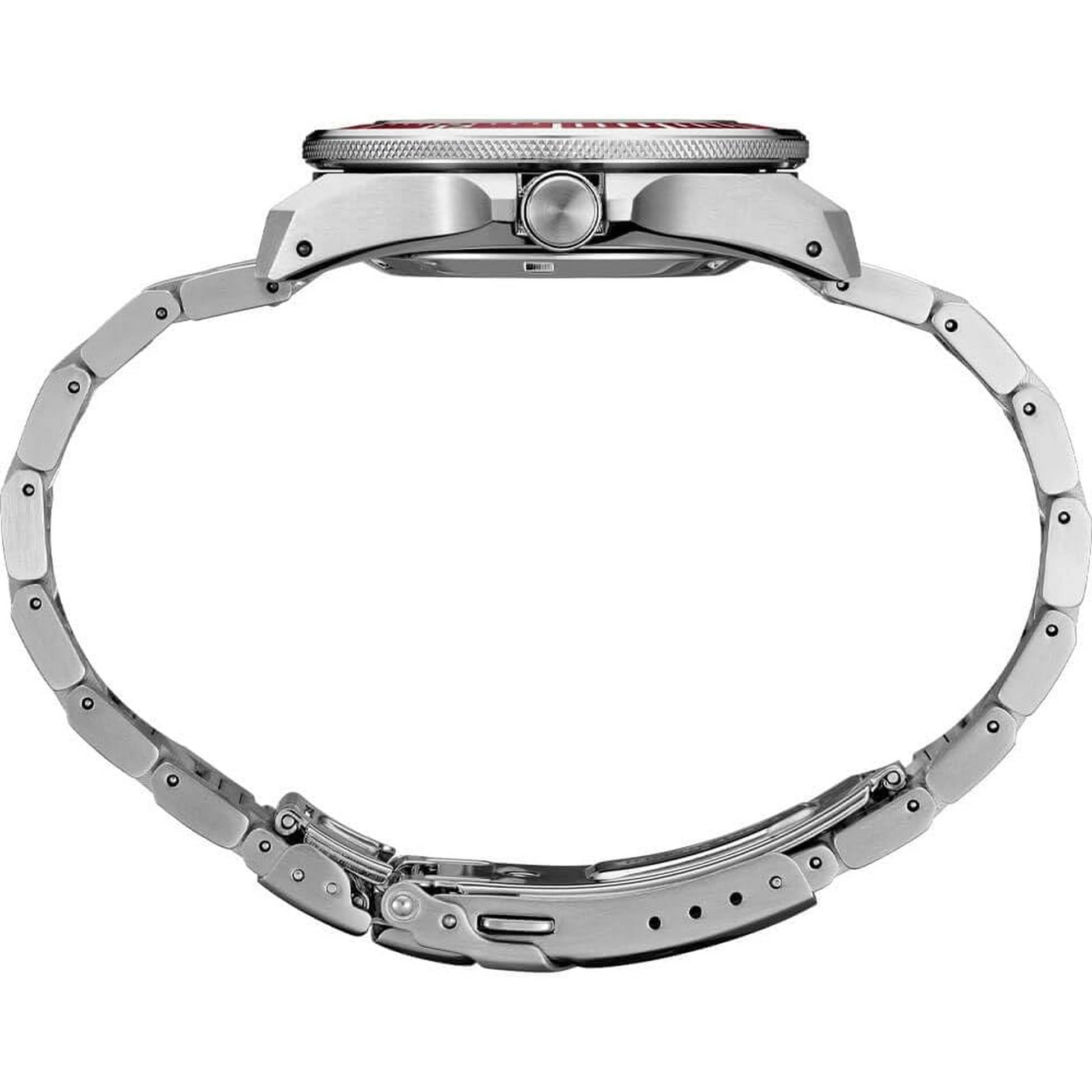 The Prospex Automatic Diver is engineered for those who embrace adventure with precision and style. Drawing inspiration from Seiko’s classic dive watches, it features a case that preserves the original’s straight lines while adopting a slimmer, more refined profile. Powered by a 23-jewel automatic movement running at 21,600 vibrations per hour, it offers around 41 hours of power reserve and supports both manual and automatic winding. The watch boasts a deep red unidirectional bezel and dial with a date window and LumiBrite hands and markers for excellent visibility. Constructed from stainless steel, it complies with ISO standards for scuba diving and includes a screw-down crown, caseback, and a secure tri-fold push-button clasp with extender. Water resistance is rated to 200 meters.