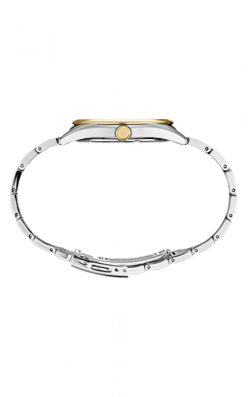 From the Essentials Collection. With classic dress/sport styling, this perfectly tailored design combines sophisticated minimalism with versatility. The sunray-finish silver dial features a date calendar and LumiBrite hands. In stainless steel, with rose-gold two-tone finish, and sapphire crystal for superior scratch resistance. 10 bar, 100M Water Resistant