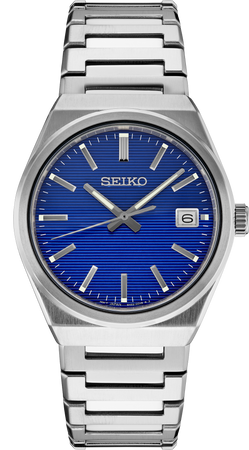 Part of the Essentials Collection, the SUR555 is a refined take on a timeless design. It showcases a bold blue pressed-pattern dial with minimalist stick indices, a date display, and LumiBrite-coated hands and markers for enhanced visibility. Constructed from stainless steel and safeguarded by a scratch-resistant sapphire crystal, this adaptable watch includes a secure screw-down caseback and a tri-fold push-button clasp. It is water resistant up to 10 bar (100 meters), ensuring dependable performance in various conditions.