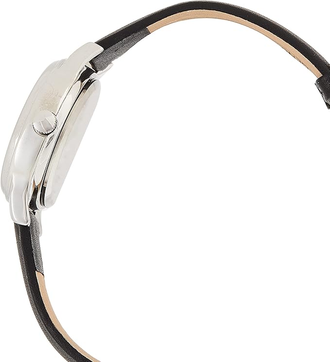 Fashionable for any occasion, the Timex T29291 silver-tone brass case watch features an easily readable dial with mid Arabic numeral display against a classic black dial background. It offers a mid-sized, round watch case with slightly raised bezel and a supple, genuine leather strap in black. It also features water resistance to 165 feet (50 meters), and date display at 3 o'clock. With the Quick Date function, you can set the date on the watch without turning the crown for every 24-hour period. Just pull the stem halfway out, and turn until desired date is reached.