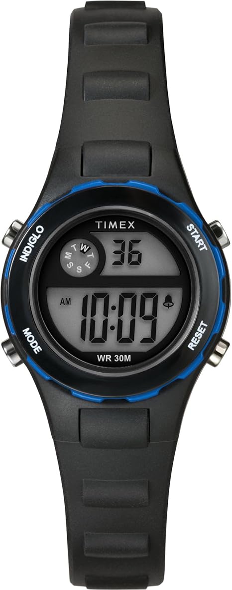 Expertly crafted with a lightweight resin case and flexible strap, the Timex Kids Digital 27mm Watch provides lasting comfort and enhanced functionality. With features such as a chronograph, alarm, timer, INDIGLO backlight, and dedicated sub-dial for tracking the day of the week, this watch is perfect for any child on the go.
